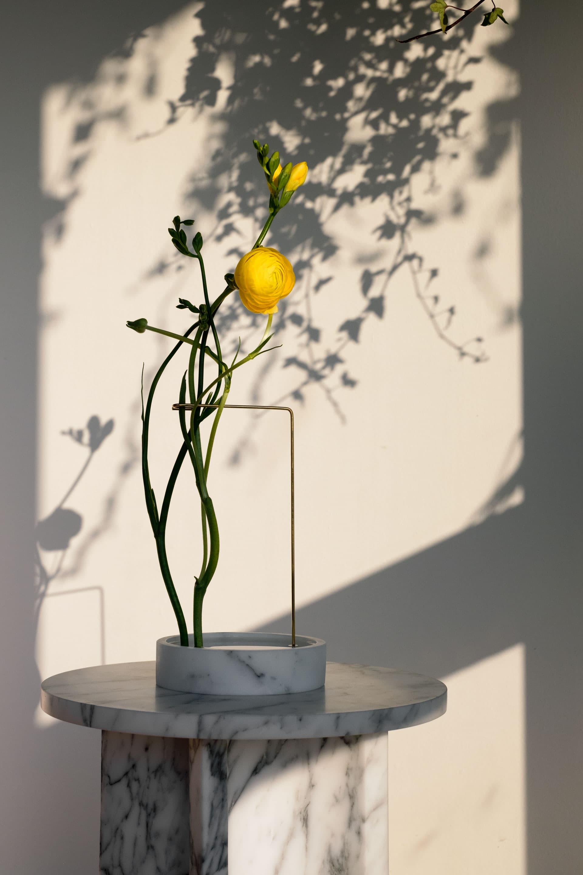 Taking inspiration from the series "postures", Studio Kleiner and Bloc studios have collaborated to create Posture vases. The flowers, mounted on a construction of metal wires and marble bases can easily be positioned in different angles by creating sculptural shapes.